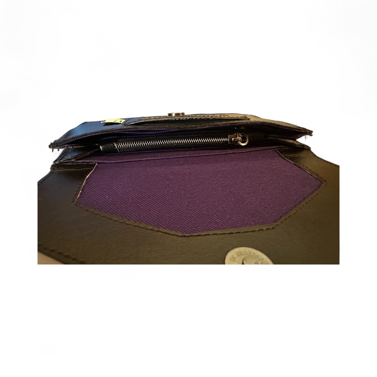 The Vestibule Wallet packs all the pockets needed to stay organized while maintaining a sleek and slim profile.  Inside there are twelve card slots, two sections for bills or receipts, and a zippered coin pouch. The flap is secured with a magnetic snap and covers the ID Window on the front of the wallet.